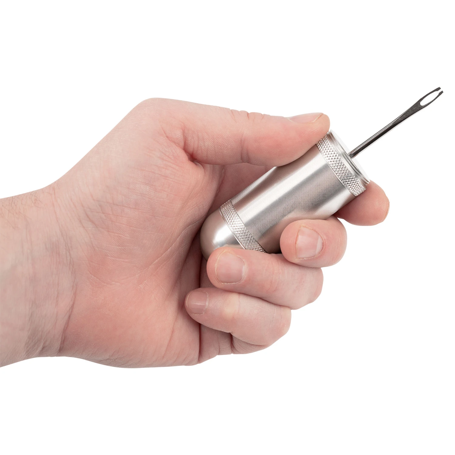 De BLUECHAIN reparatieset garandeert snelle eerste hulp bij een ongecompliceerde lekke band. De set is geschikt voor tubeless banden van alle types. De aluminium capsule is niet alleen voor opslag, maar kan ook worden gebruikt als handvat voor het prikgereedschap. Klein en praktisch: berg de capsule op in uw fiets of zadeltas, of zelfs in uw rugzak.