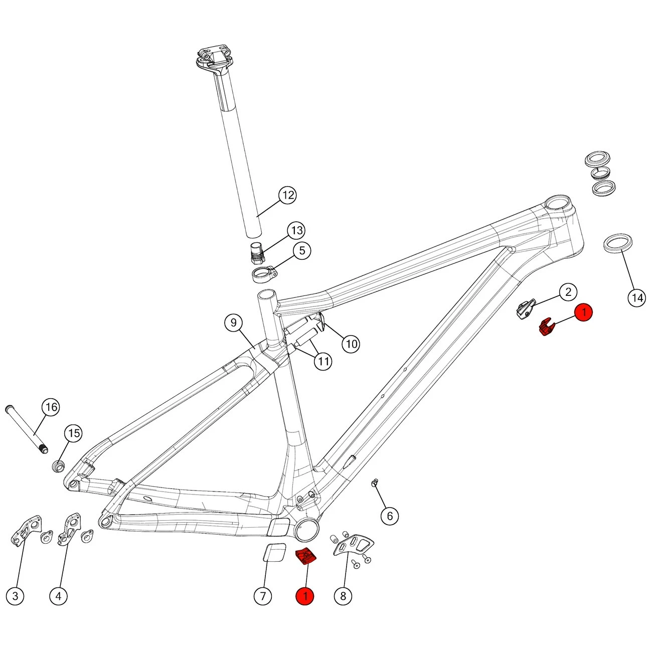 Kabelgeleider #13 voor BMC Teamelite 01 en Teamelite 02 vanaf modeljaar 2016. Versie voor mechanisch schakelen.