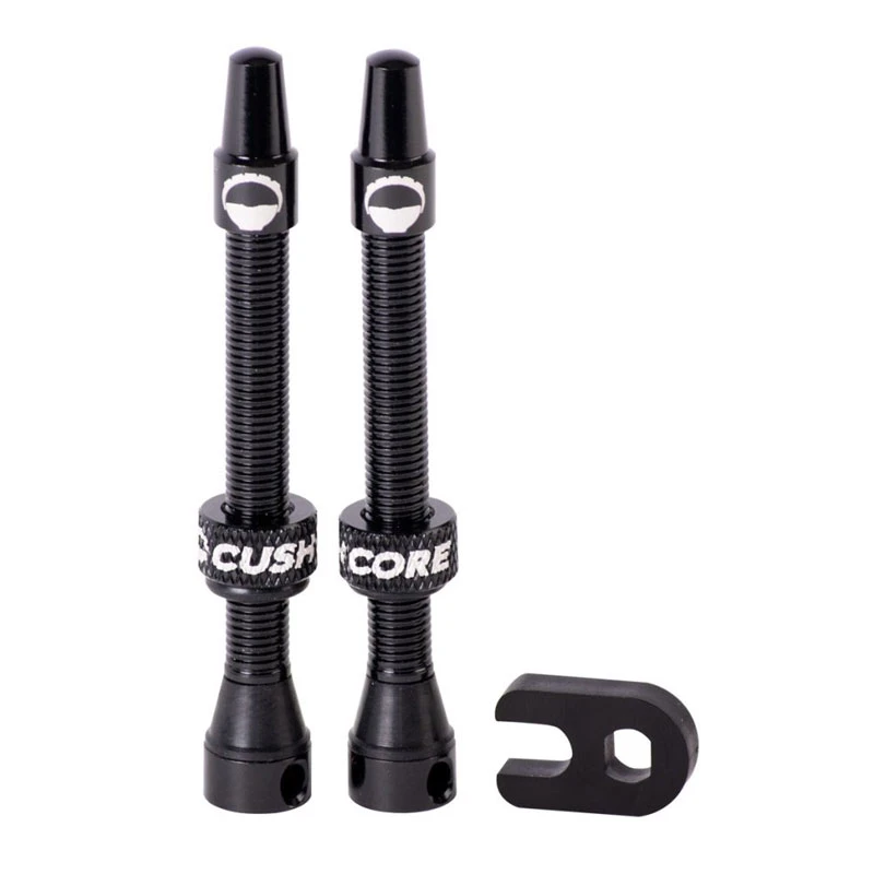 2 binnenbandloze ventielen (55 mm) inclusief gereedschap. Geschikt voor alle CushCore-bandinzetstukken.