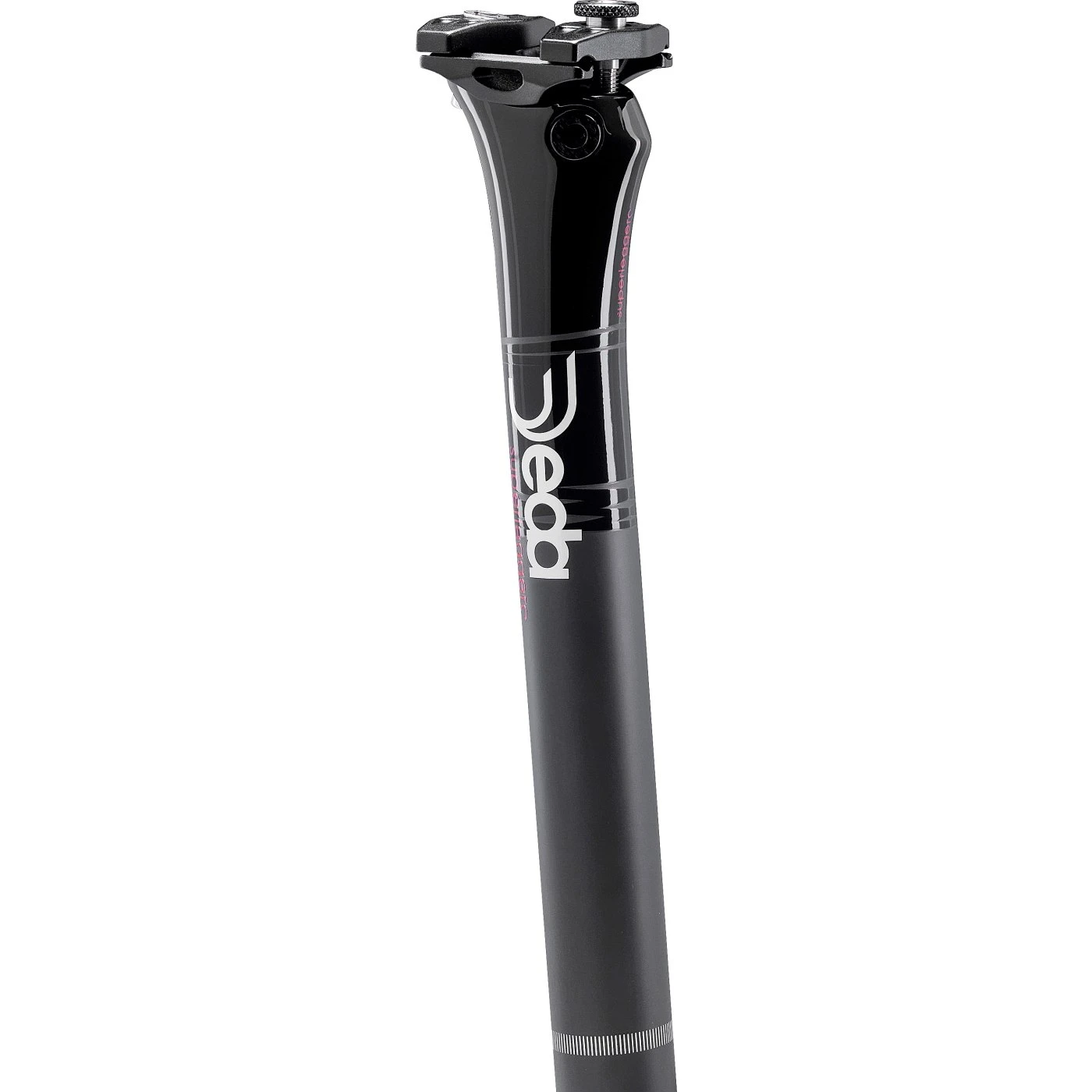 De Deda Superleggero is een ultralichte carbon zadelpen zonder concessies te doen aan betrouwbaarheid en duurzaamheid. Het One-Bolt klemsysteem zorgt voor eenvoudige en snelle montage. De zadelhoek is fijn af te stellen met de stelschroef aan de kop van de zadelpen. Verkrijgbaar in 27,2 mm en 31,6 mm diameter. Met 0 mm terugslag.