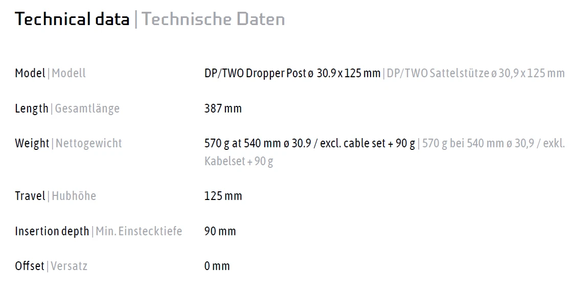 DXC DP/TWO Telescopische Zadelpen – Ø 30.9 – Slag 125 Mm
