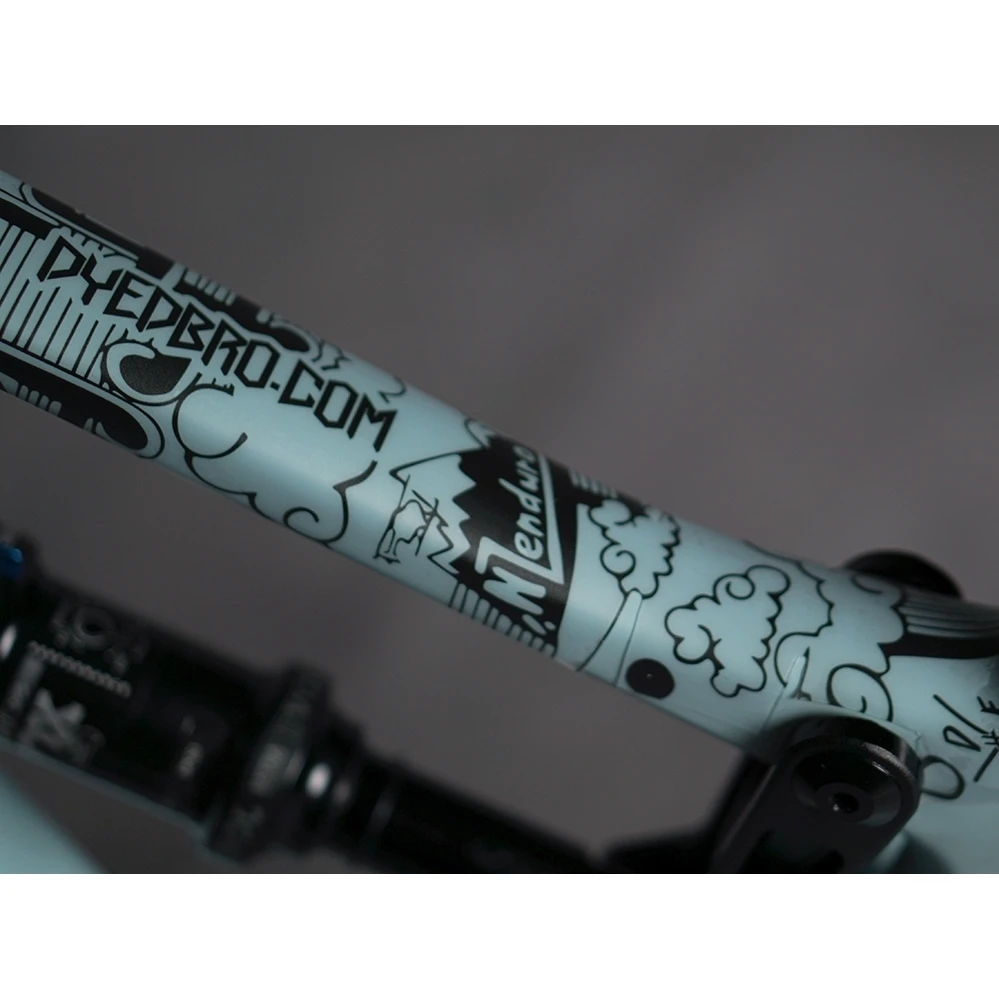 Anka Martin was de allereerste renner die met Dyedbro een framebeschermer ontwierp. Dyedbro heeft haar en haar man geholpen deel te nemen aan de jaarlijkse enduro-race – de NZ Enduro. In 2019 ontwierp Anka een gloednieuwe framebeschermer, geïnspireerd op Maori-kunst. Ze noemde het Aotearoa, wat letterlijk “het land van de lange witte wolk” betekent – zo noemen de Maori Nieuw-Zeeland.