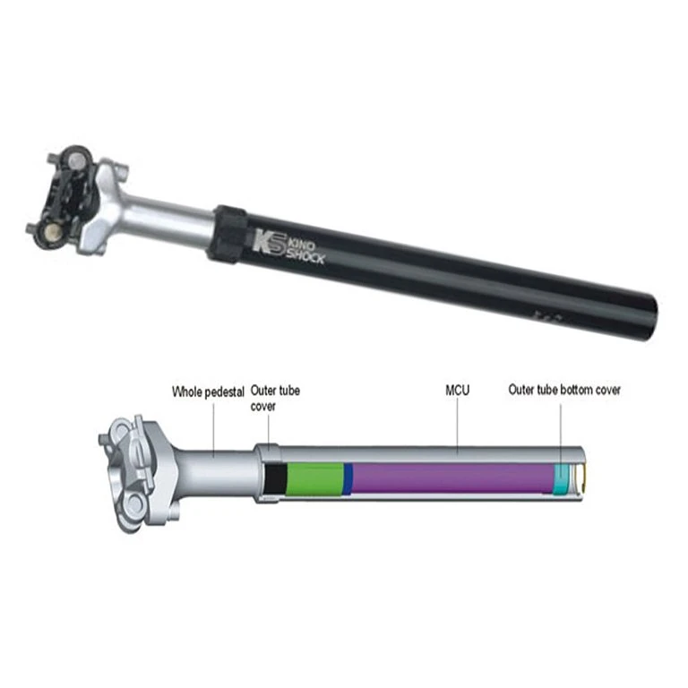 Goedkope geveerde zadelpen met instelbare voorbelasting en 45 mm veerweg. Ideaal voor lange fietstochten, ook als het terrein niet zo glad is. De voorspanning kan worden ingesteld aan de onderkant van de zadelpen met een inbusbout.