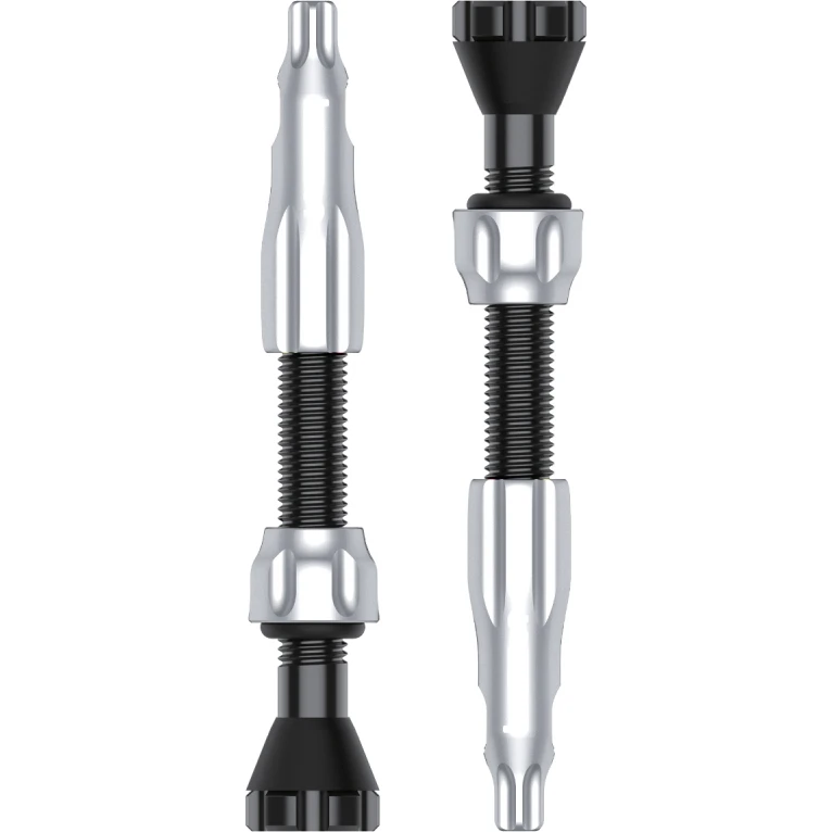 De kleppen zijn voorzien van een O-ring en een gegroefde aluminium borgmoer voor een lekvrije afdichting. Ze zijn geschikt voor tubeless afdichtingen, zijn ontworpen voor een maximale luchtstroom en zijn compatibel met alle Presta vloerpompen en handpompen.