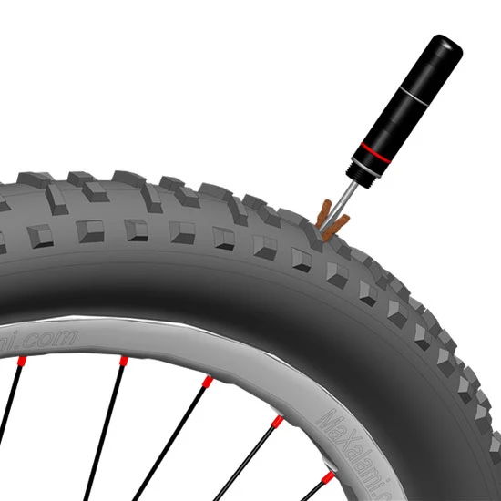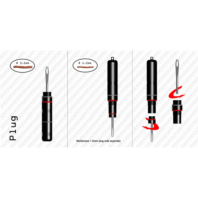 Het grote inbrenggereedschap is geschikt voor MTB en MaXalami Tubeless patches met een diameter van 3,5 mm. Het kleine inbrenggereedschap is geoptimaliseerd voor weg- of gravelbanden en voor kleine beschadigingen aan MTB-banden.