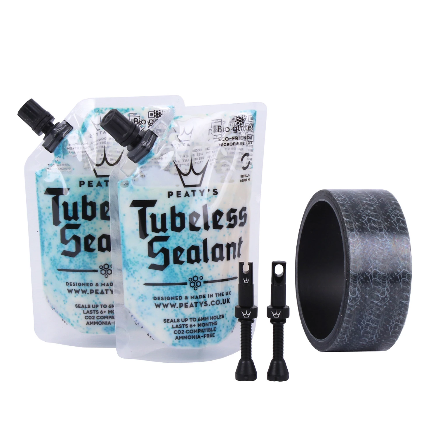 De Peaty Tubeless Conversion Kit bevat alles wat je nodig hebt voor een volledig geoptimaliseerde tubeless configuratie – RimJob velglint, tubeless ventielen en afdichtmiddel. Als u meer tijd op de fiets wilt doorbrengen en minder tijd wilt besteden aan het repareren van lekke banden, is dit de perfecte oplossing. Peaty’s tubeless conversie kit is prachtig ontworpen met makkelijk te volgen setup instructies.