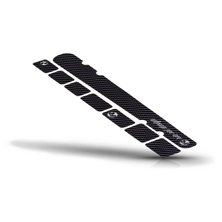De zelfklevende framebeschermingsfolie beschermt effectief tegen lakschade aan de achtervork. Het haptische oppervlak in carbonlook ziet er stijlvol uit en is zeer slijtvast. Maakt van elke fiets een blikvanger. De Chainguard set bevat ook zeven patches die het frame beschermen tegen schaafwonden veroorzaakt door schurende kabels of lijnen.