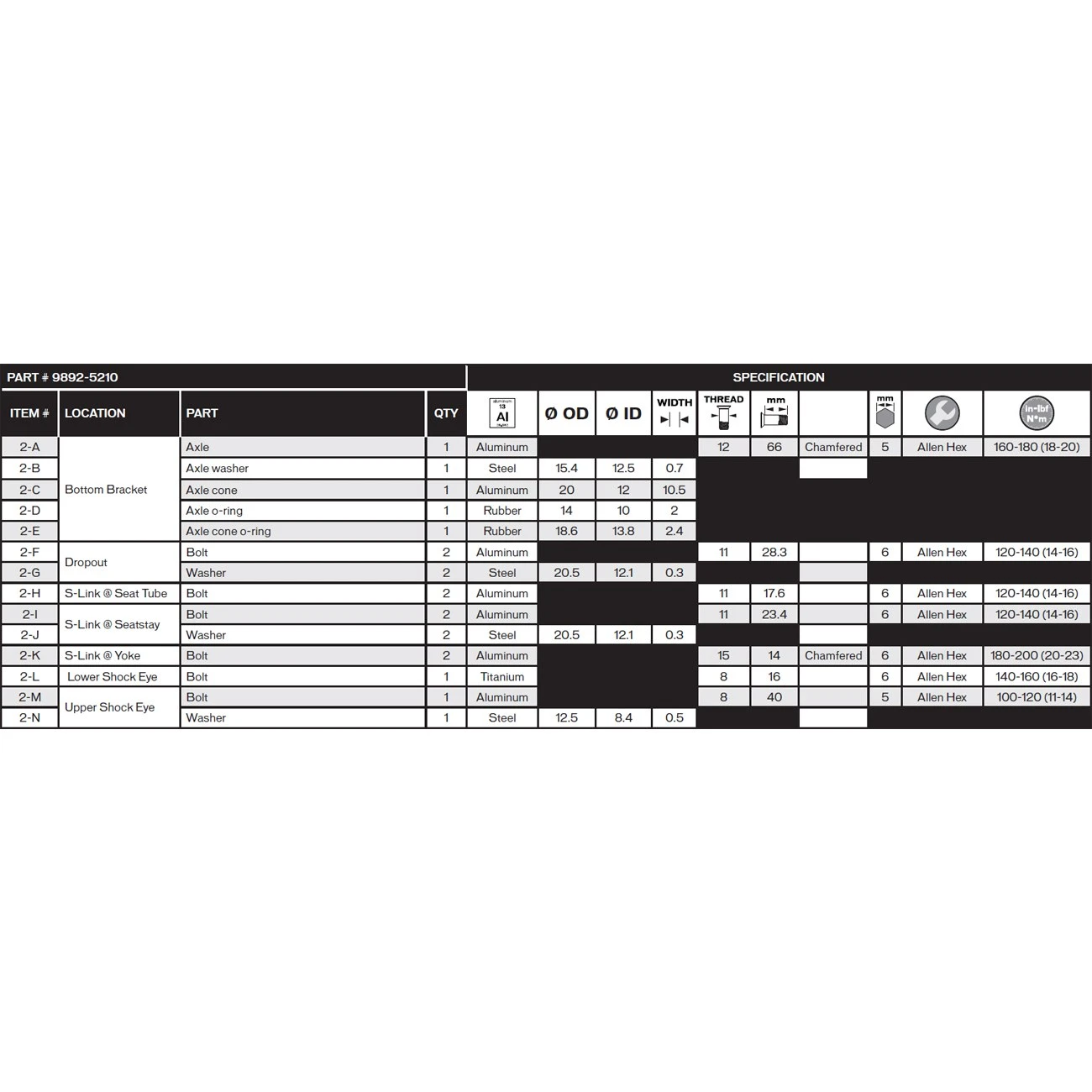 Specialized 9892-5210 Boltkit For Stumpjumper FSR 2012