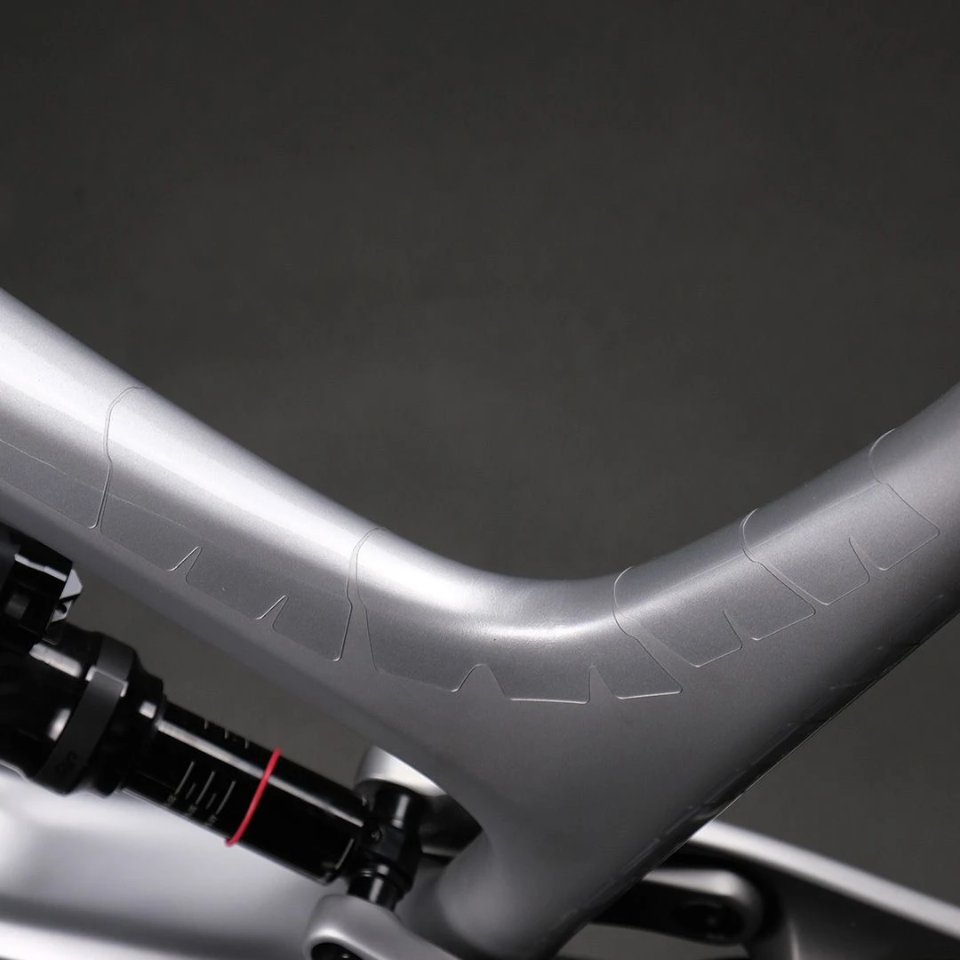- De framekit bestaat uit folies voor de bovenbuis, onderbuis, zitbuis, staande achtervork en achtervork.